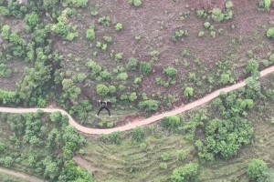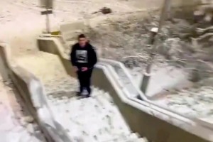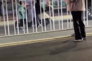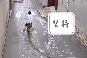 男子强行骑车通过刚铺好的水泥路