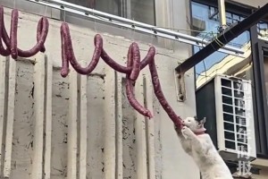 馋嘴猫咪偷啃邻居家腊肠,双手紧抱模样超可爱